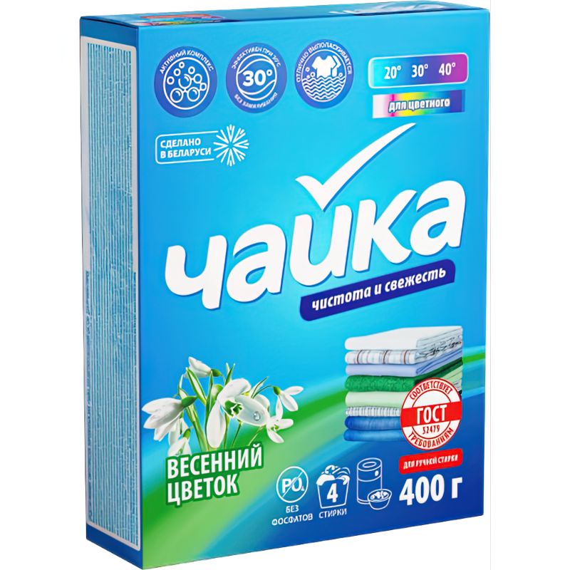 Порошок стиральный 400гр ручная стирка Весенний цветок Чайка