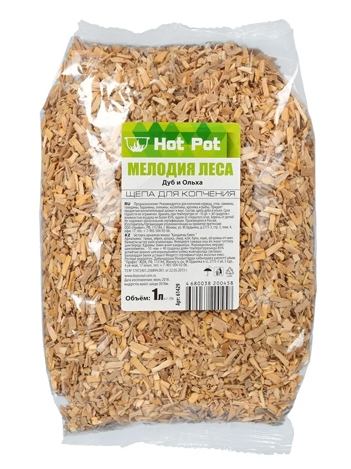Щепа для копчения "Мелодия леса" (Дуб и Ольха) 1л. Hot Pot 61429