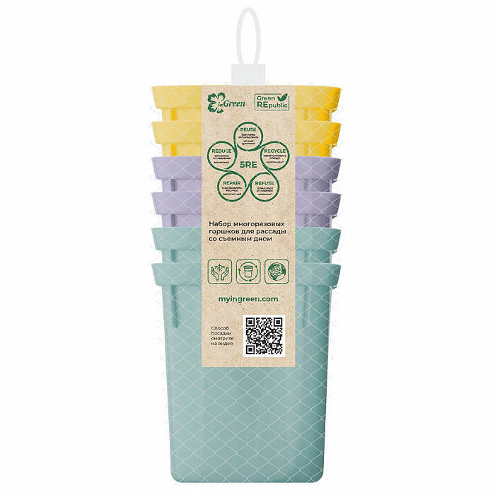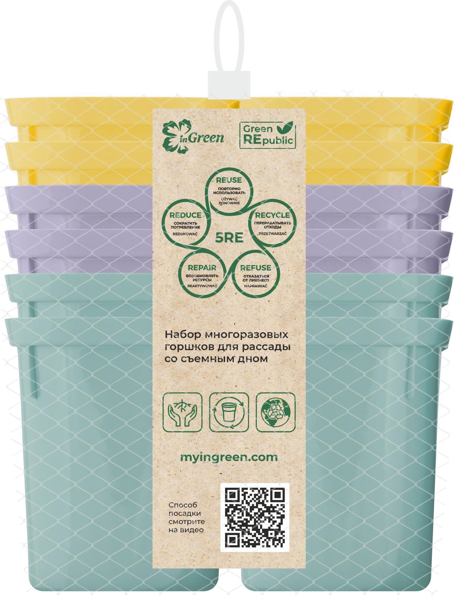 Набор многоразовых горшочков для рассады InGreen со съем.дном 400мл, 6шт в сетке с подвесIG604310998