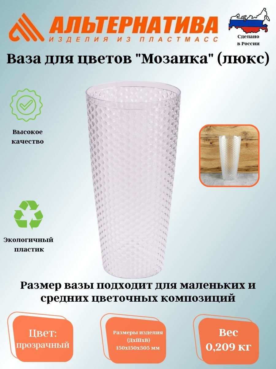 Ваза для цветов "Мозаика люкс" Д150мм,В305мм (прозрачный) М7521